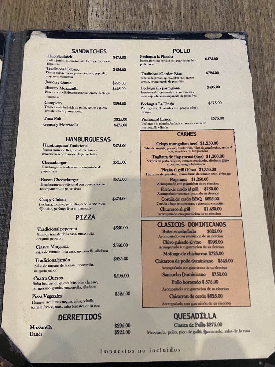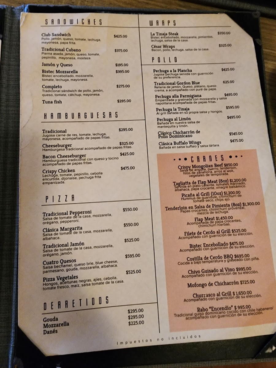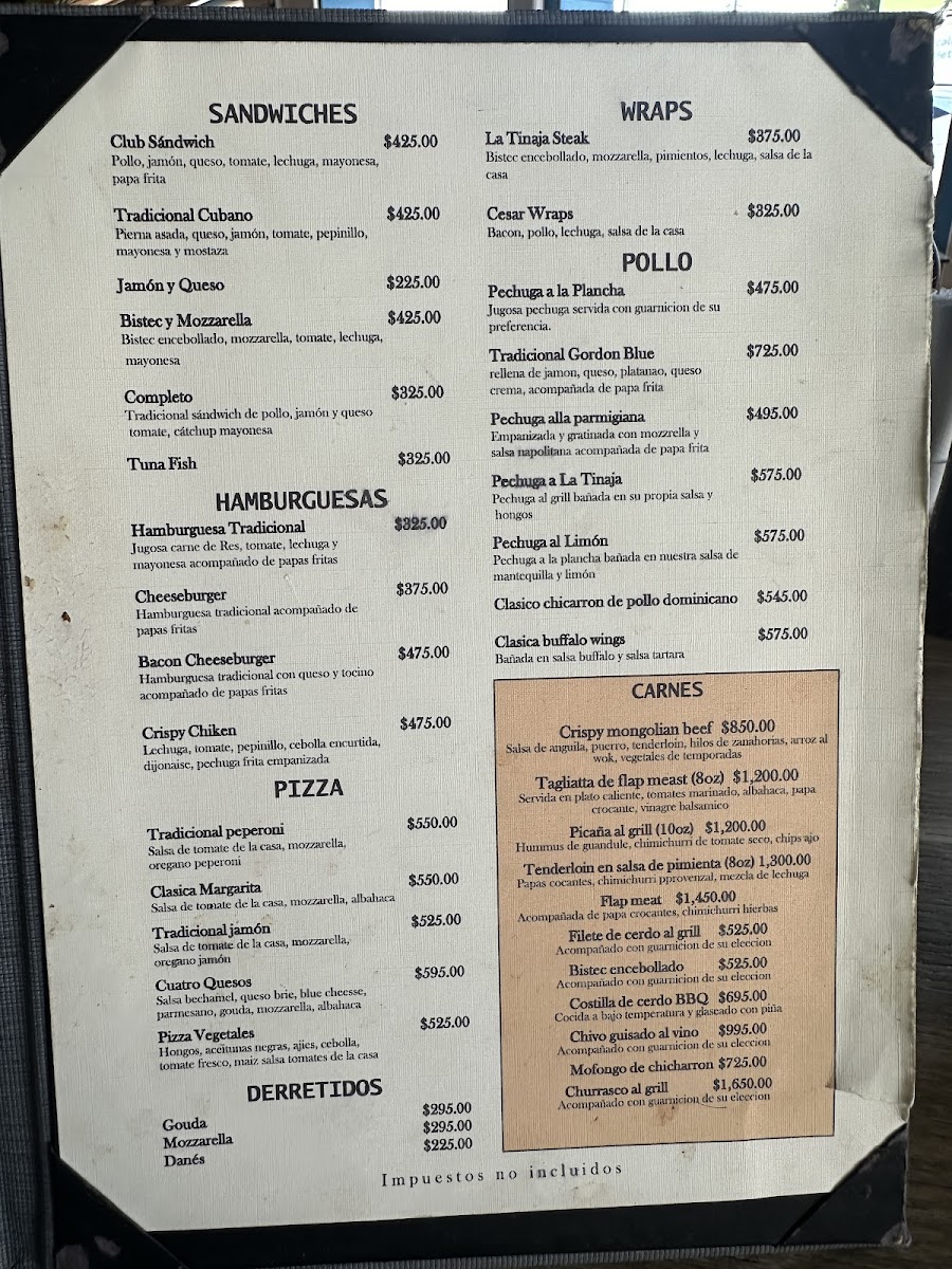 La Tinaja offers a menu that blends traditional Dominican flavors with comforting, casual dishes perfect for any time of day. Whether you’re settling in for a leisurely breakfast, enjoying a midday meal, or looking for hearty evening options, the menu presents familiar plates served with a touch of local warmth.